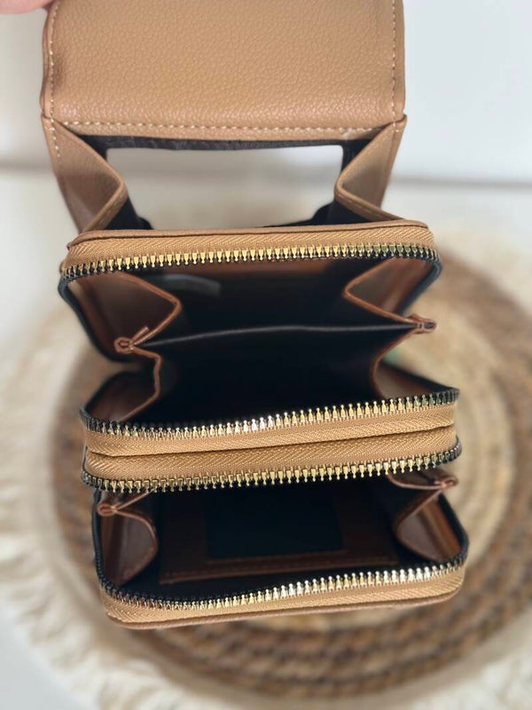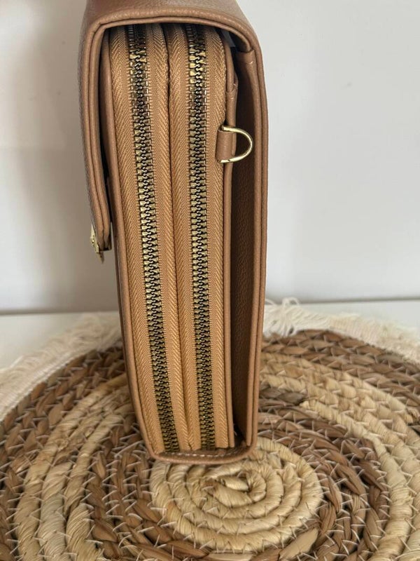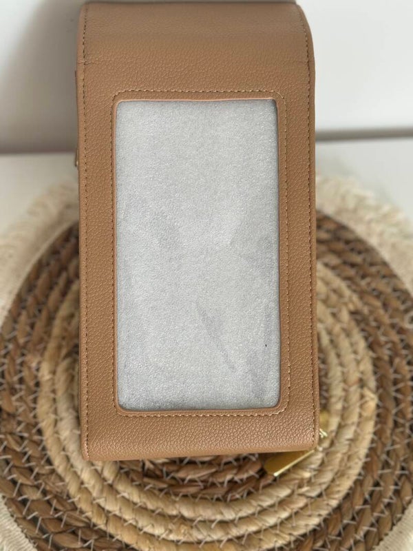 Sacoche rectangle avec plusieurs rangement,petite sangle derrière la pochette c'est pour ranger le téléphone possible d'utiliser un écran tactile